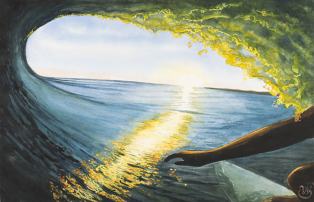C.J. Hobgood is a WSL (World Surf League) champion surfer, and getting shacked is probably an everyday occurrence for him. In 2015 he filmed a GoPro video, dancing along a perfect wave into a perfect sunset in an apocalyptic drama that took my breath away . . . and I had to paint it.